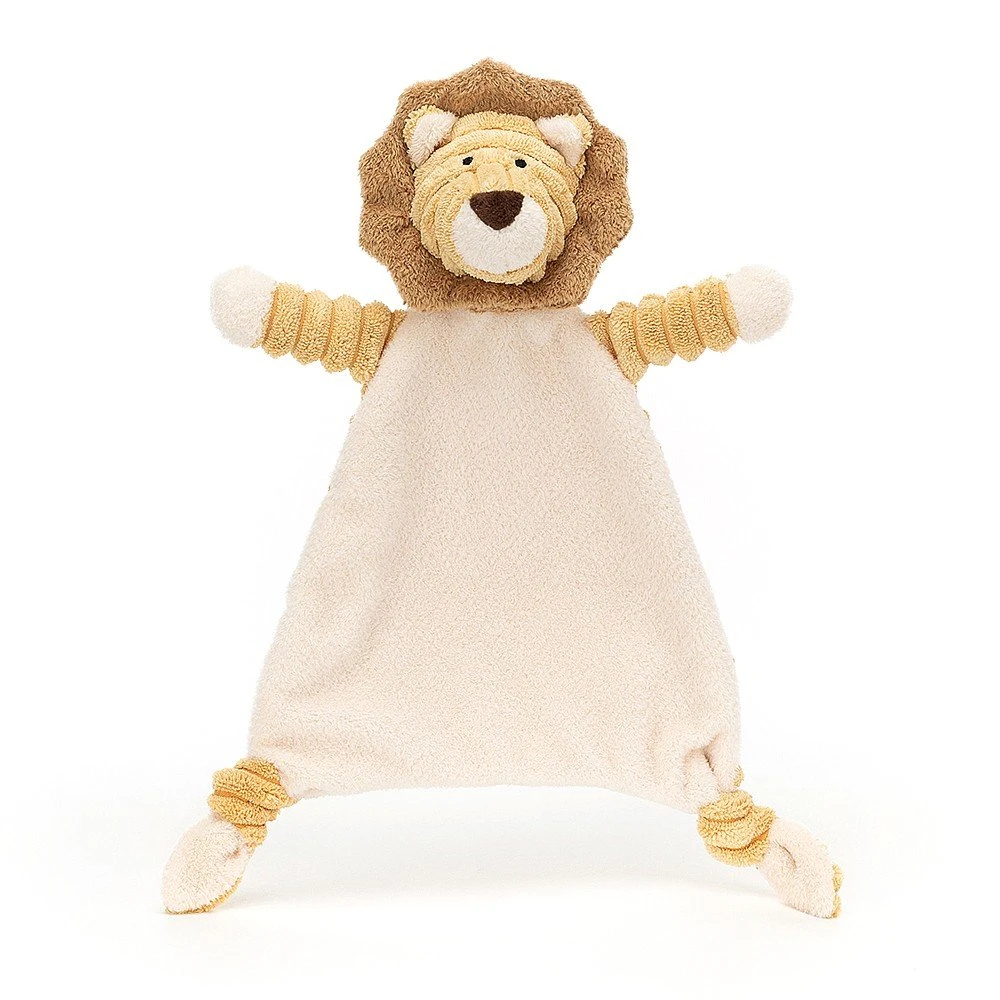 Jellycat knuffeldoekje Cordy Roy baby lion laat je hart smelten. Het zachte geribbelde lijfje van de leeuw is heerlijk om mee te knuffelen. De manen en pootjes van de leeuw zorgen voor extra houvast voor je baby, perfect als lievelingsknuffel. Het knuffeldoekje is 22 x 28 cm en heerlijk zacht.